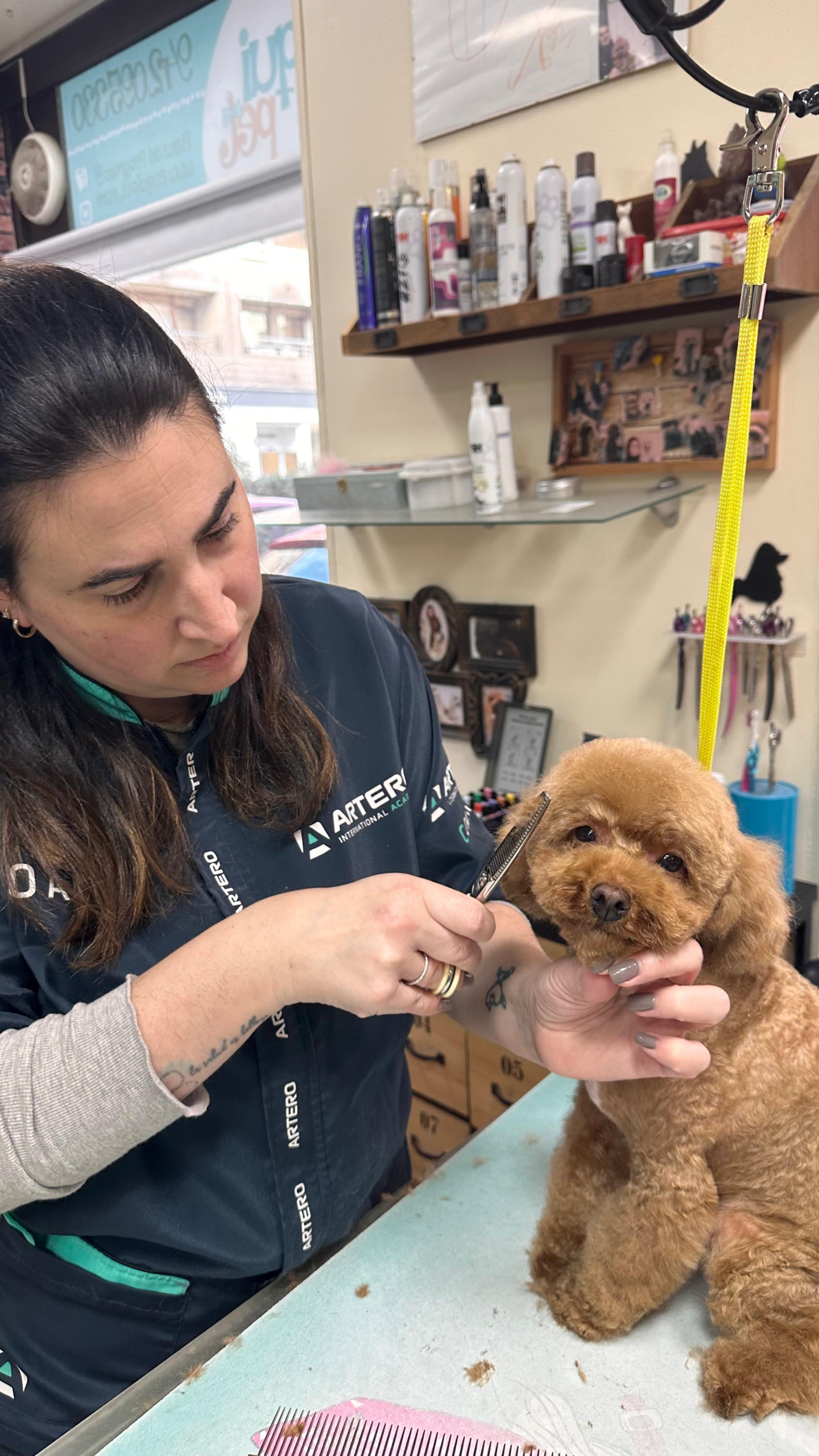 Nuestra peluquería es completamente abierta: trabajamos en un espacio visible desde el exterior, para que cualquier persona pueda ver cómo cuidamos y tratamos a los peludos. Aquí no hay secretos: solo dedicación y amor por lo que hacemos.